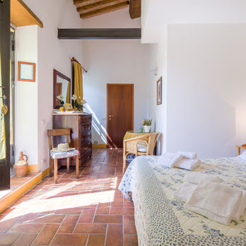 Double and Twin Bedrooms are all situated on the ground floor, in the barn or in the main house with private en suite private bathrooms and a private spot in the garden with table and chairs. Each room is different in terms of size and furnishings and reflects the owners' passion for art, creativity and the Chianti countryside. In the bathroom, toiletrie (hand soap, shampoo and shower gel) have a rich nourishing formula based on Tuscan olive oil with a pleasant and fresh natural fragrance assuring wellbeing to body and mind.
